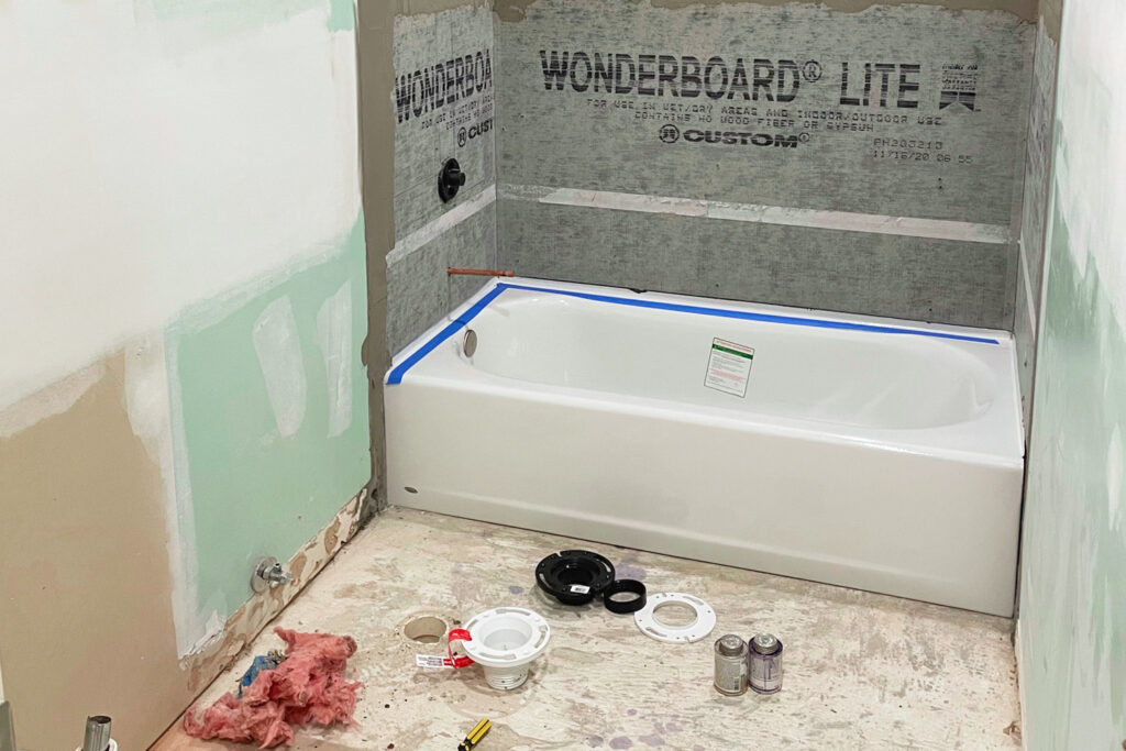 Interior renovation project involving electrical and plumbing upgrades to support a full modernization of the space.